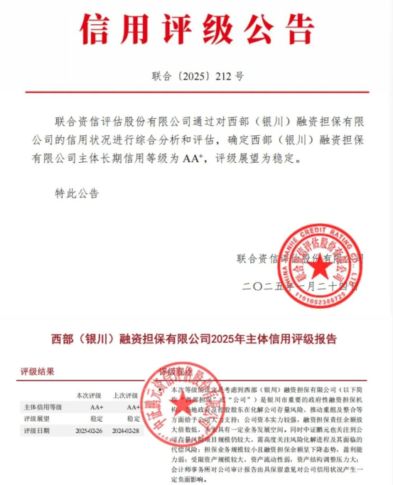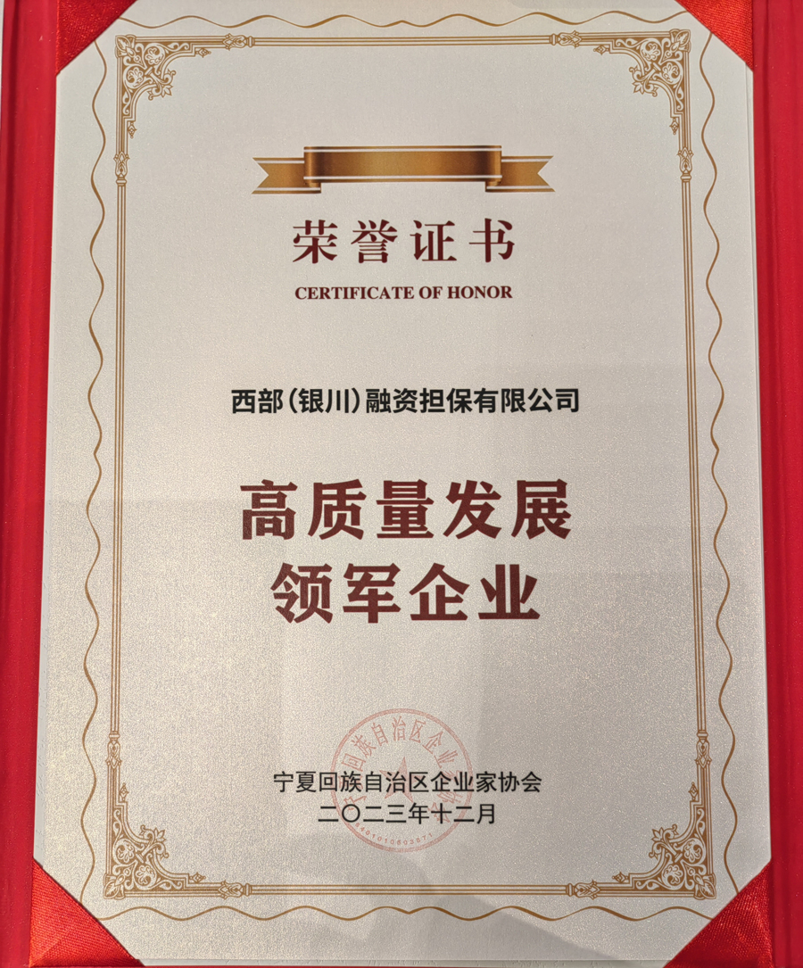西部(銀川)融資擔保有限公司是經銀川市委、政府批準并出資設立的以擔保為主業(yè)的專業(yè)金融服務機構,于2014年7月正式掛牌成立,注冊資本45.87億元,是AA+級擔保機構,為中國銀行間市場交易商協(xié)會會員單位,中國融資擔保業(yè)協(xié)會副會長單位,累計七次蟬聯(lián)國內金融領域最權威的《金融時報》“金龍獎,累計四年榮獲“自治區(qū)金融服務創(chuàng)新獎,憑借創(chuàng)新優(yōu)勢、規(guī)模優(yōu)勢、品牌優(yōu)勢躋身國內擔保行業(yè)前列,成為國內具有核心競爭力和品牌影響力的擔保機構。